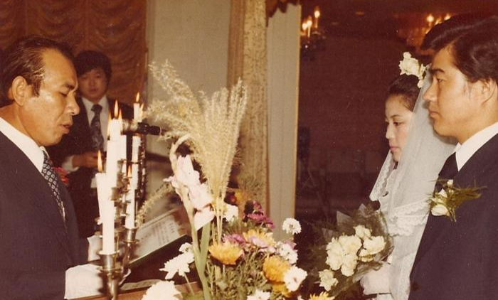 고 김항욱 교수님(후에 총장)이 성혼 선언문을 낭독-. 그리고 나의 공군장교 64기/대학 동기생과 직장 동료/신부 친구와 함께